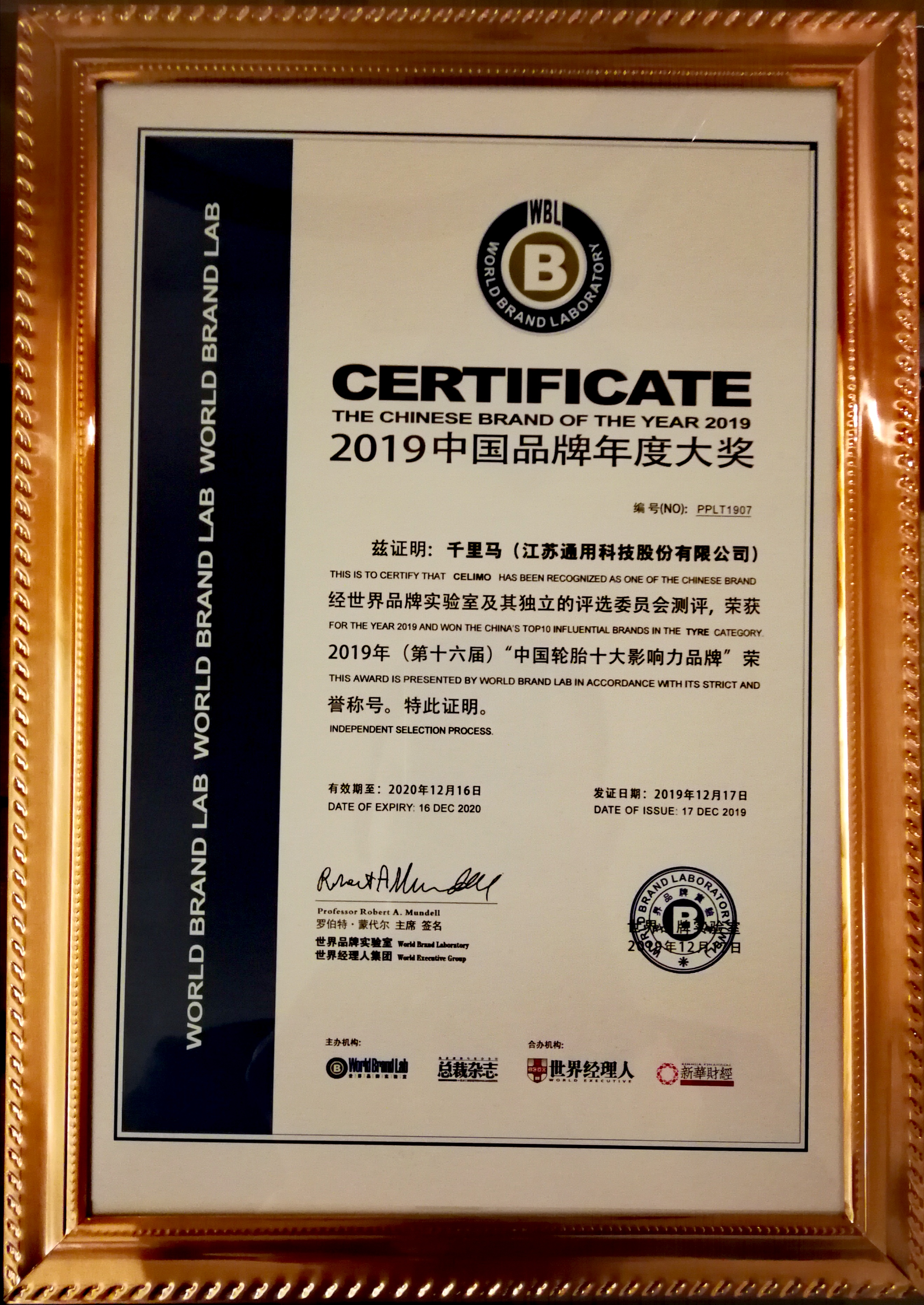 2019年12月17日,由業(yè)界權(quán)威機(jī)構(gòu)世界品牌實(shí)驗(yàn)室主辦的2019“中國(guó)品牌年度大獎(jiǎng)”評(píng)選在北京揭曉,在這場(chǎng)被譽(yù)為“中國(guó)品牌奧斯卡”的年度盛典上,憑借雄厚的品牌實(shí)力與獨(dú)到的匠心產(chǎn)品,通用股份旗下“千里馬”輪胎榮膺2019年”中國(guó)輪胎十大影響力品牌”,為民族品牌馳騁跨越添上了濃墨重彩的一筆。