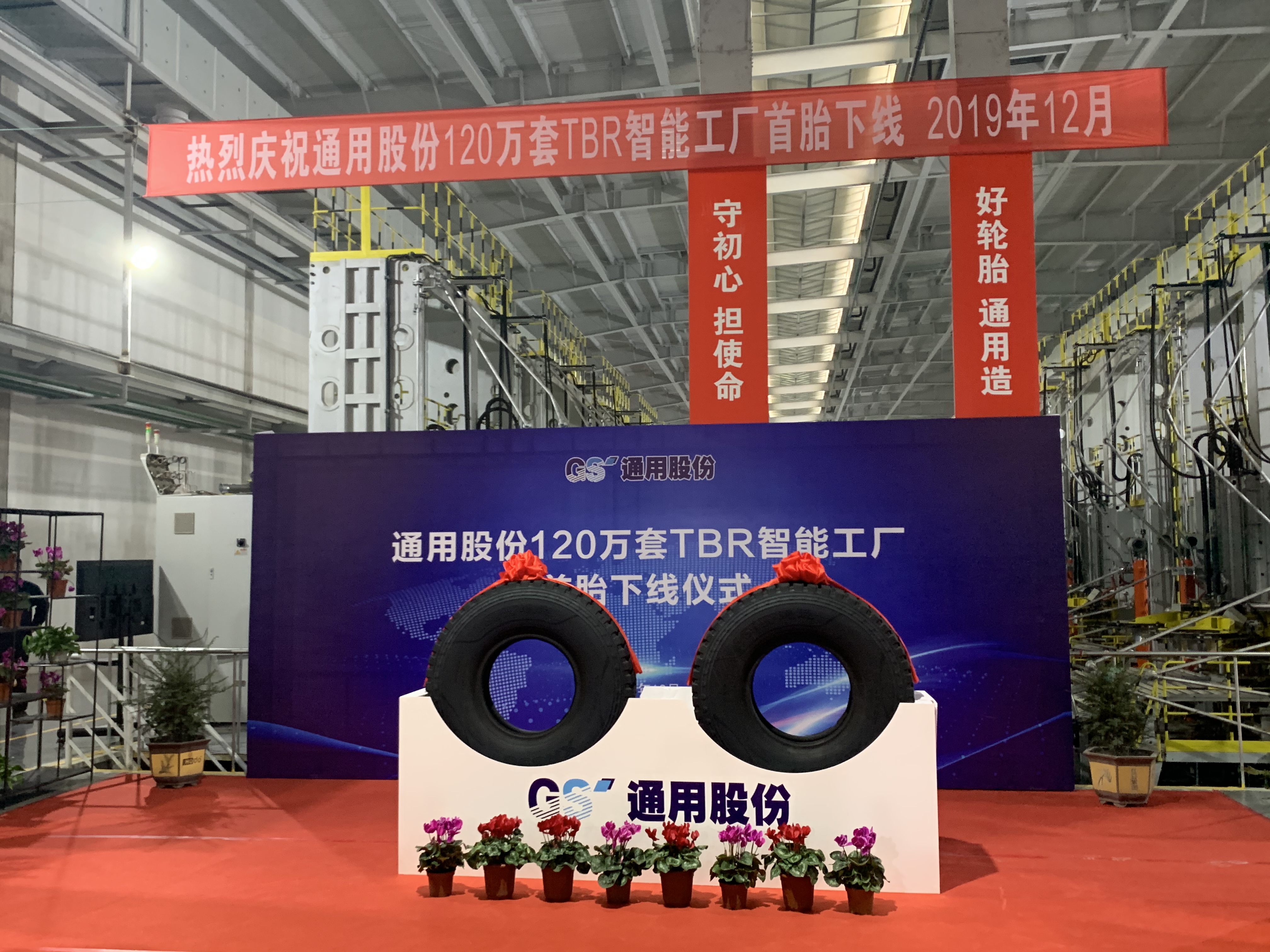 12月27日上午,通用股份120萬套TBR智能工廠首條全鋼子午線輪胎正式下線。下線首胎為通運(yùn) 12.00R20—XR856。通用股份董事長顧萃,常務(wù)副總經(jīng)理程金元、生產(chǎn)板塊總經(jīng)理虞秀鳳等領(lǐng)導(dǎo)出席了本次儀式。
