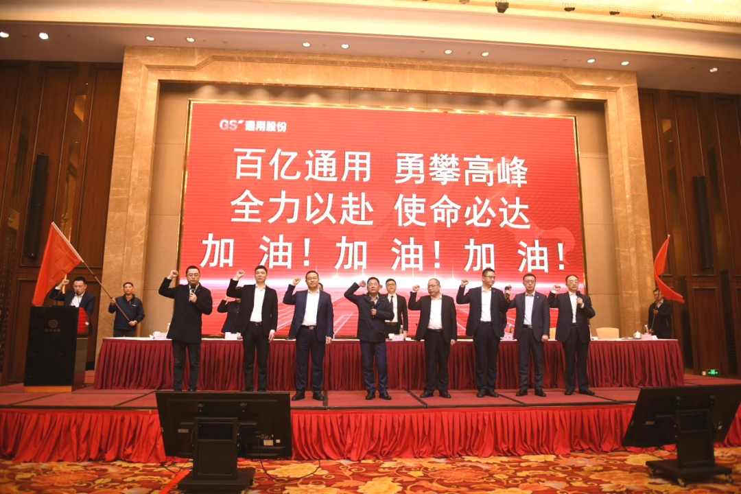龍行龘龘、大干一場!新征程號角已吹響,戰旗正飛揚。會議最后,各版塊負責人以及全員進行誓師環節。“百億通用、勇攀高峰;全力以赴,使命必達......”鏗鏘有力的口號,傳遞了通用股份積極向上、拼搏進取的昂揚斗志與龍馬精神!