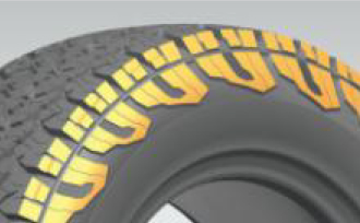 增強(qiáng)型輪胎結(jié)構(gòu),多層胎體骨架材料共同作用通過計(jì)算機(jī)仿真優(yōu)化,提升輪胎強(qiáng)度及通過性能;